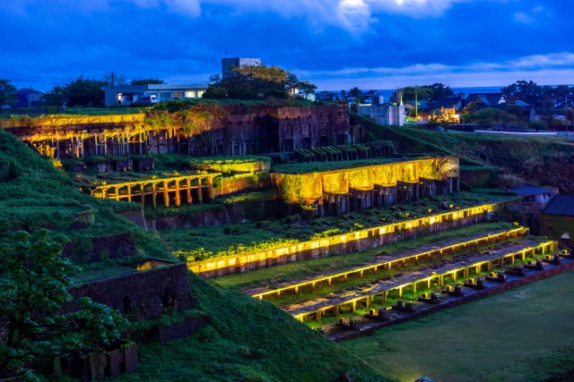 1日目は両津港から金山方面へ向かいます。両津港から相川行きのバスで移動し、午前中に「きらりうむ佐渡」で金山を学習。坑道や展示を見学した後、相川港近くの食堂で佐渡産魚介の昼食を楽しみます。午後は徒歩で佐渡奉行所跡と北沢浮遊選鉱場を見学し、夕方に大間港へ。大間港で夕日や釣り人の風景を満喫した後、相川の宿にチェックインし温泉で疲れを癒しましょう。